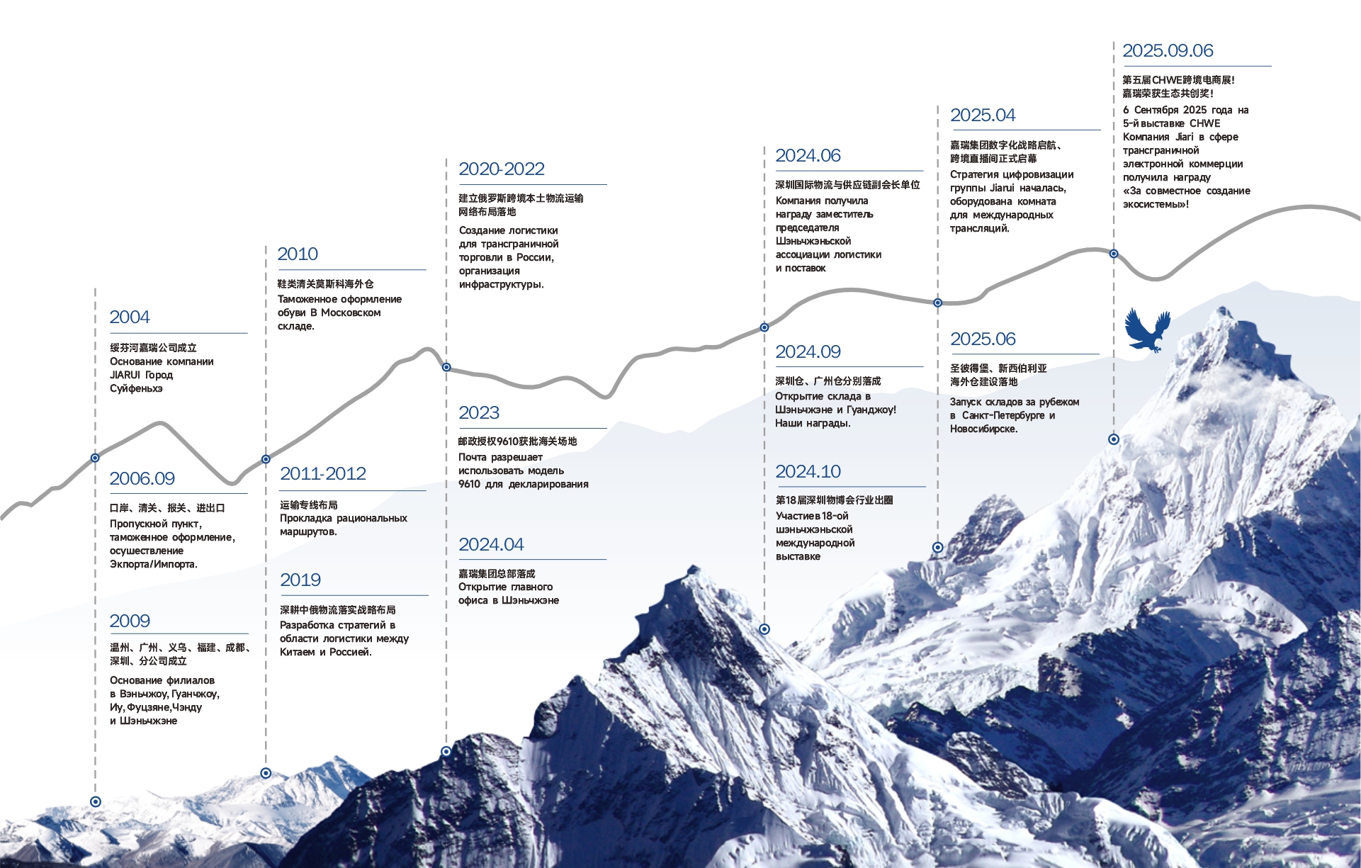 В 2004 году в Суйфэньхэ было посеяно семя мечты о развитии китайско-российских логистических и торговых отношений. Прошедшие годы превратили Группу Jiarui из хрупкого ростка в могучее дерево трансграничной индустрии, а из первопроходца в эталон отрасли.